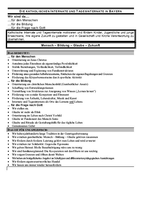 Informationen aus den bayerischen katholischen Internaten/Tagesinternaten